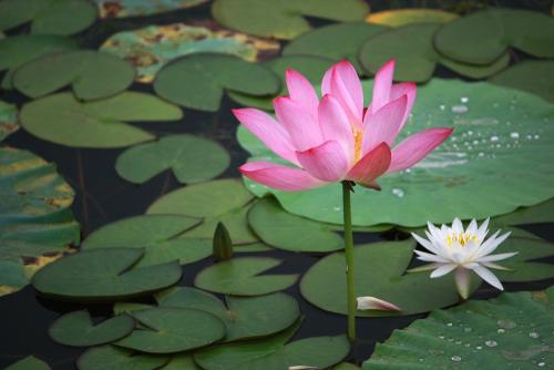 1、那盛开的荷花挺着碧绿的茎杆,像一位亭亭玉立的少女眺望着远方。