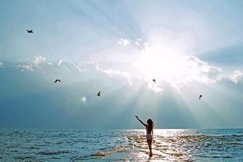 3. 淡淡的朝阳刚把树梢照亮。